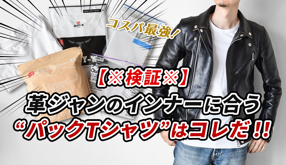 革ジャンのインナーといえば定番は白Tシャツですが、白Tにもバリエーションの幅を持たせてあげるのもアリ。